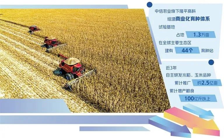 在全球农作物种业企业排行榜上位居前列;旗下企业隆平高科在杂交水稻、杂交玉米、杂交谷子等种子领域取得丰硕成果;在农业农村部今年发布的种业阵型企业名单中,旗下企业隆平高科和华智生物等被明确为国家种业振兴骨干力量和优势企业……取得这些成绩的企业,就是专注于农作物育种和种业科技的中信农业科技股份有限公司(以下称“中信农业”)。