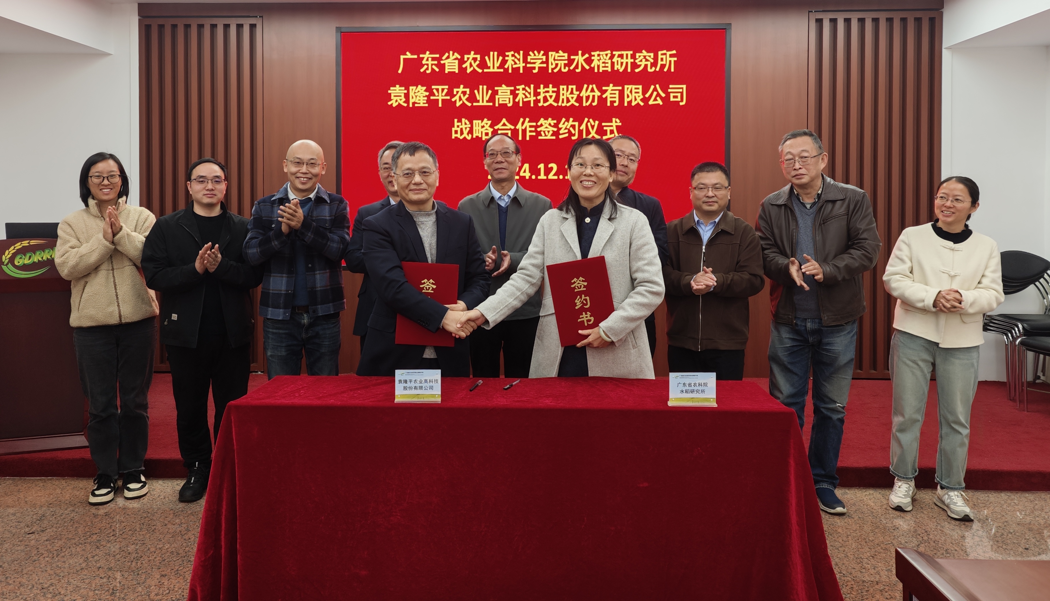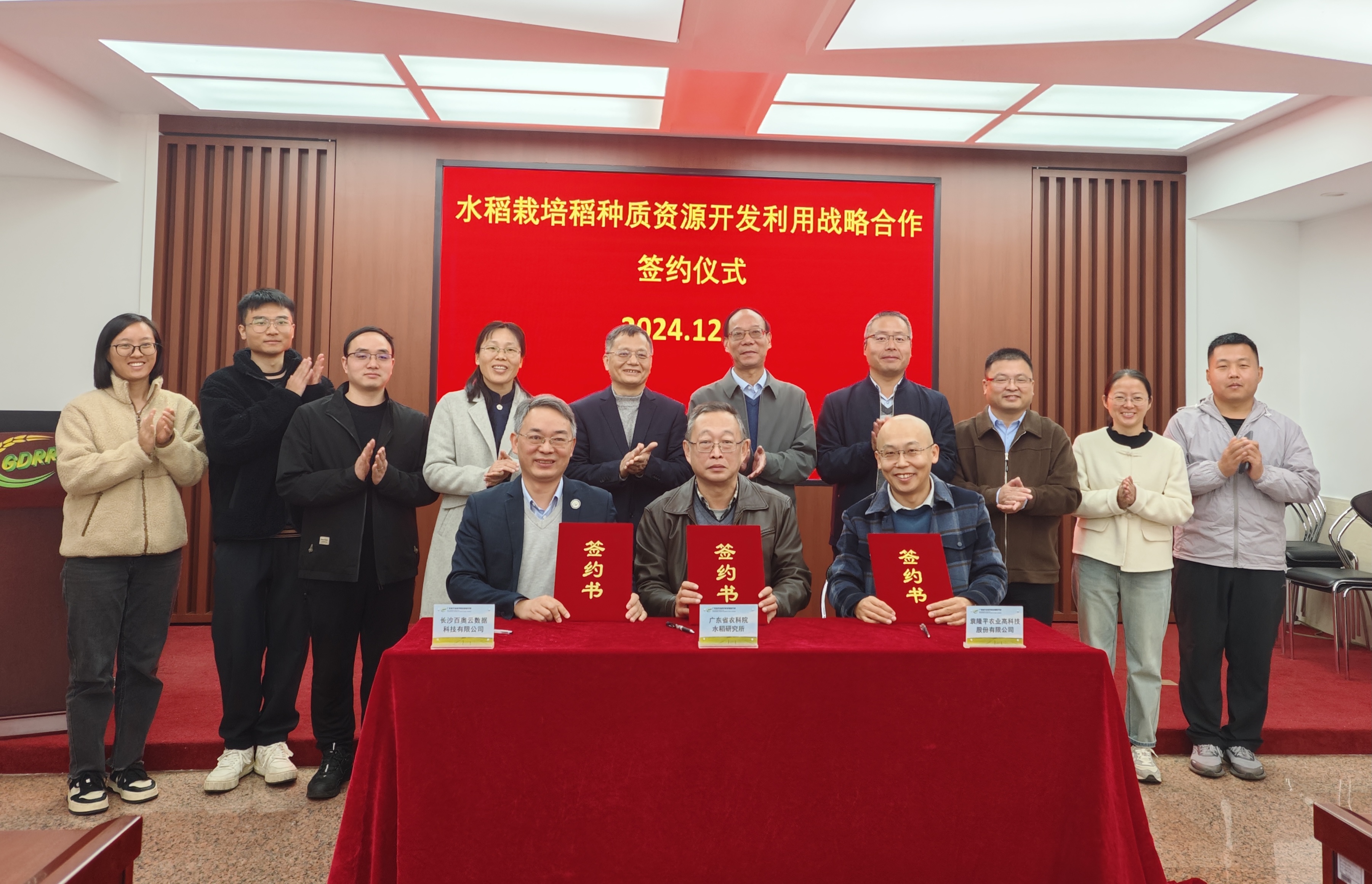 为落实习近平关于做好“三农”工作的重要指示,推进农业科技力量协同攻关,助力我国现代种业发展,12月19日,隆平高科与广东省农业科学院水稻研究所签订战略合作协议。同时,为充分发挥稻种资源的价值,隆平高科与广东省农业科学院水稻研究所、长沙百奥云数据科技有限公司签订了水稻栽培稻种质资源开发利用战略合作协议。广东省农业科学院水稻研究所党委书记肖昕,副所长李健雄、潘俊峰、陈国荣及水稻遗传资源研究室主任李晨,长沙百奥云数据科技有限公司商务副总王艾青、AI与大数据总监彭建祥,隆平高科党委委员、科研管理部总经理杨广,隆平高科种业科学院副院长王凯等出席签约仪式。广东省农业科学院水稻研究所所长何秀英主持仪式。