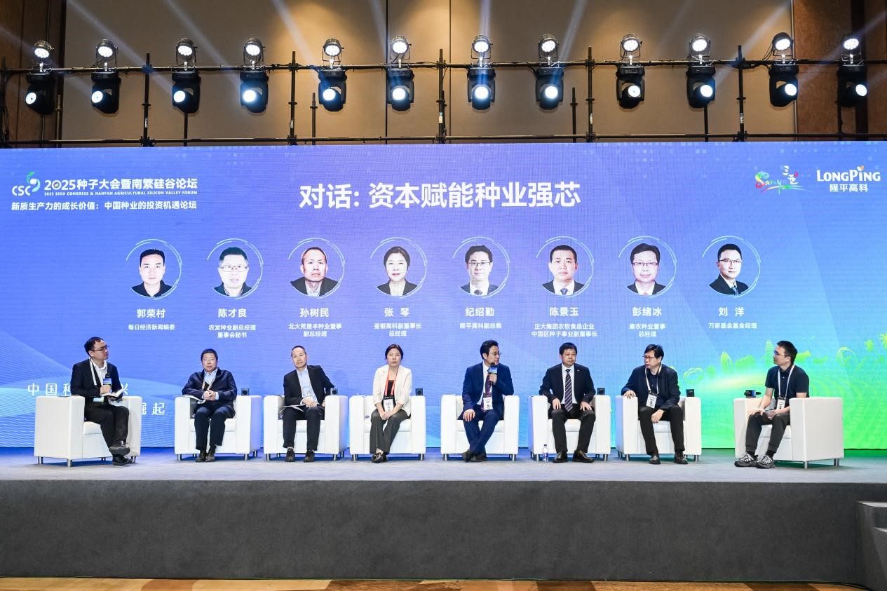 论坛设置以“资本赋能种业强芯”为主题的圆桌对话,每日经济新闻编委郭荣村、万家基金基金经理担任主持,隆平高科副总裁纪绍勤,荃银高科副董事长、总经理张琴,垦丰种业董事、副总经理孙树民,正大集团农牧食品企业中国区种子事业副董事长陈景玉,农发种业副总经理、董事会秘书陈才良,康农种业董事、总经理彭绪冰齐聚一堂,围绕资本如何助力种业科技创新、产业资源整合等话题展开讨论,分享种企在资本支持下的发展战略和创新实践。