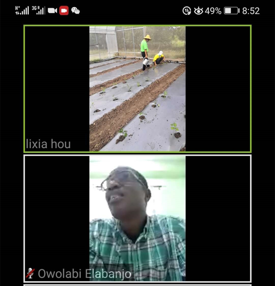 安巴当地时间6月19日,援安巴农业技术援助项目组线上示范培训在项目基地格林堡大棚顺利举行, 6名安巴农业部官员和当地农民参加。