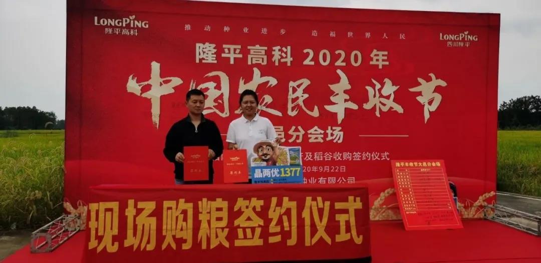 丰收节当天,在湖南长沙关山基地主会场,洞庭春米业、腾宏米业、佑林米业、智诚米业等9家米业与隆平高科签订稻谷收购意向协议,承诺将优先、优价收购公司合作种植户生产的优质稻谷。