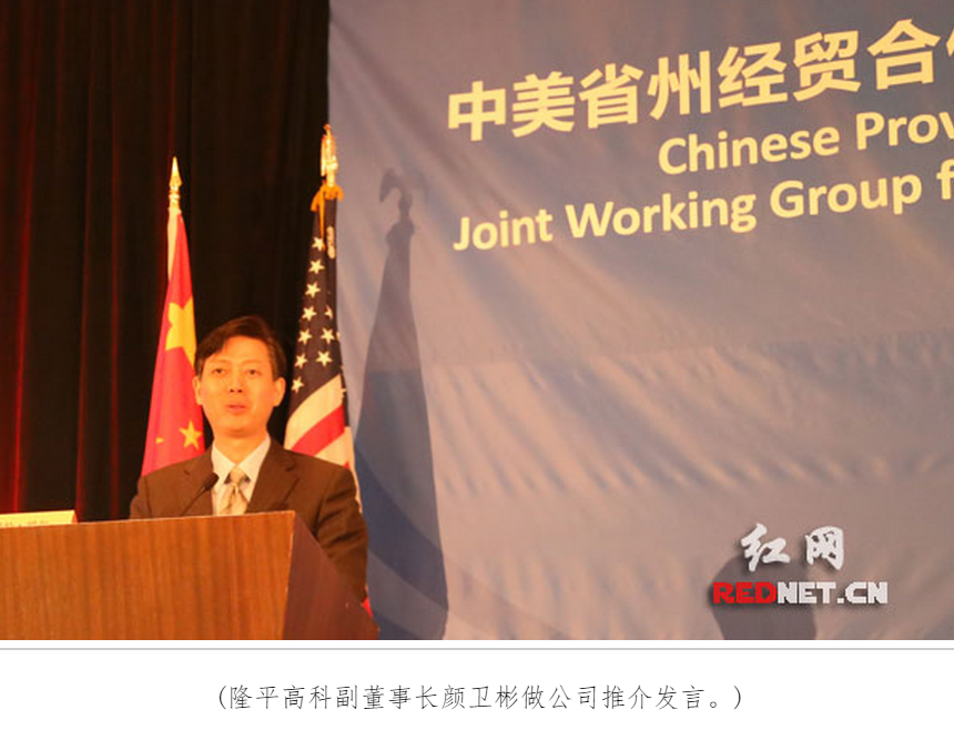 隆平高科副董事长颜卫彬受邀参加并作主题发言,表达了关于促进与美国企业进行高科技农业合作的具体建议。